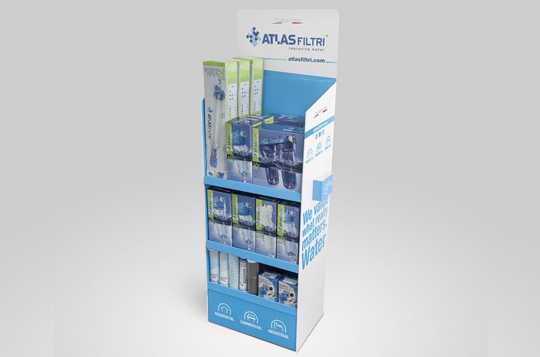 Заполните дисплей оригинальными картриджами и корпусами Atlas Filtri: его красочный и уникальный дизайн привлечет внимание и желания ваших клиентов, как никогда раньше.